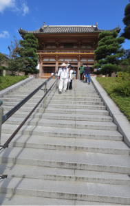 山門の前の長い階段をお互い励まし合いながら、一歩一歩登っておられました。